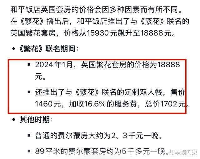 据悉,和平饭店的“英国套房”,价格在1.88万左右,再加上《繁花》爆红,几乎是供不应求。