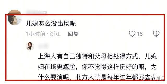 由于现场儿媳章龄之缺席,所以很多人感到疑惑。其实反过来想一下,这样也挺好,有儿媳在,反而会使得两位老人放不开,再者,上海夫妻的相处模式好似也是这样,彼此不参与对方父母的重要时刻,人人都是独立的,这样才能避免矛盾。