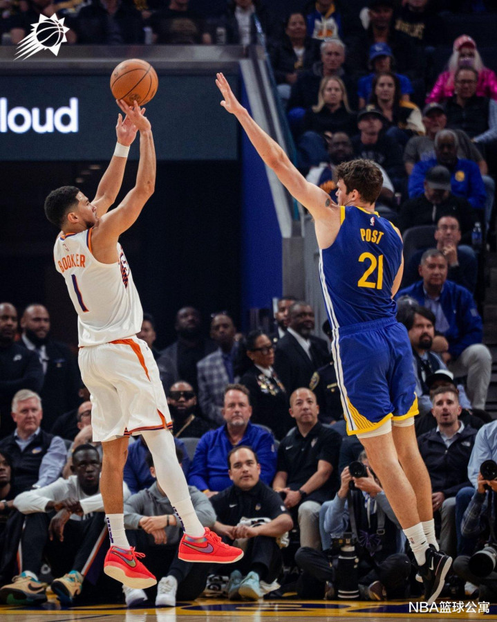 布克上半场砍下了17分,第3节再得17分。末节,布克还在努力追分。在布克的率领之下,太阳一度看到了逆转取胜的曙光。不过,穆迪、库里的稳健发挥,让布克全场的努力功亏一篑。