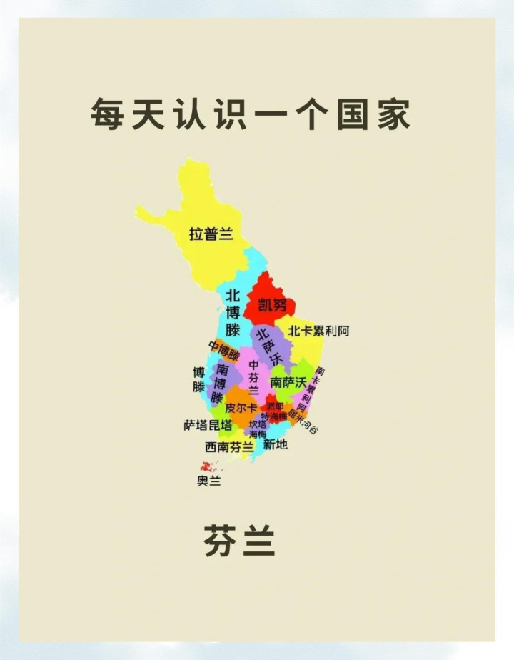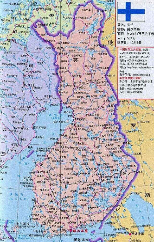 芬兰是一个北欧国家,领土中有三分之一的地方位于北极圈。总面积为33.8万平方公里,是欧洲第七大国家。