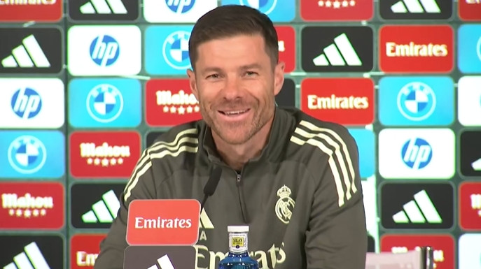直播吧12月02日讯皇马主帅哈维·阿隆索出席对阵毕尔巴鄂竞技的赛前发布会,发生了有趣的一幕。