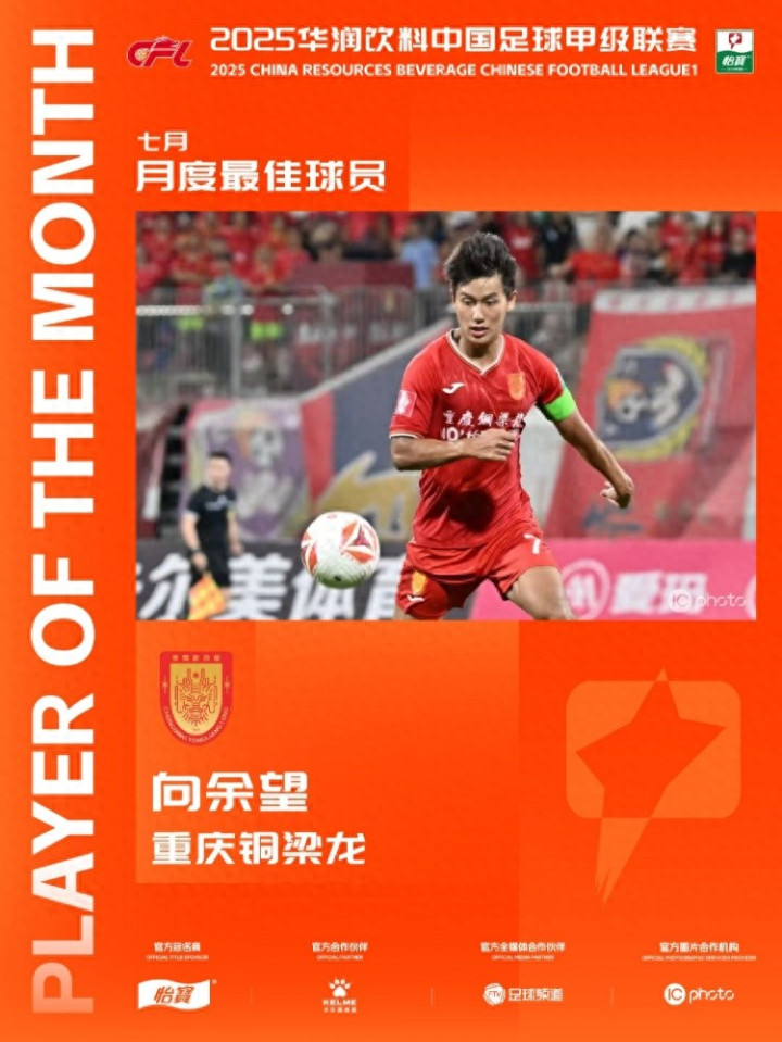 直播吧8月14日讯 中甲联赛官方公布了7月最佳球员,重庆铜梁龙球员向余望成功当选,他在4场比赛中攻入6球。