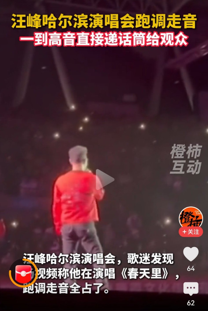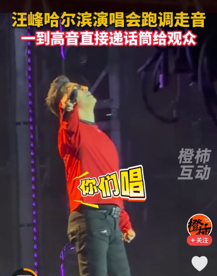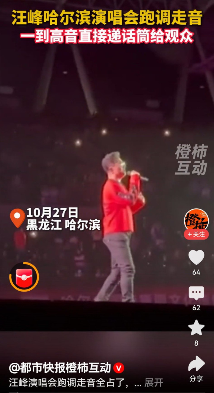 10月27日,54岁汪峰在哈尔滨举行个人演唱会。结果跑调走音他全占了。